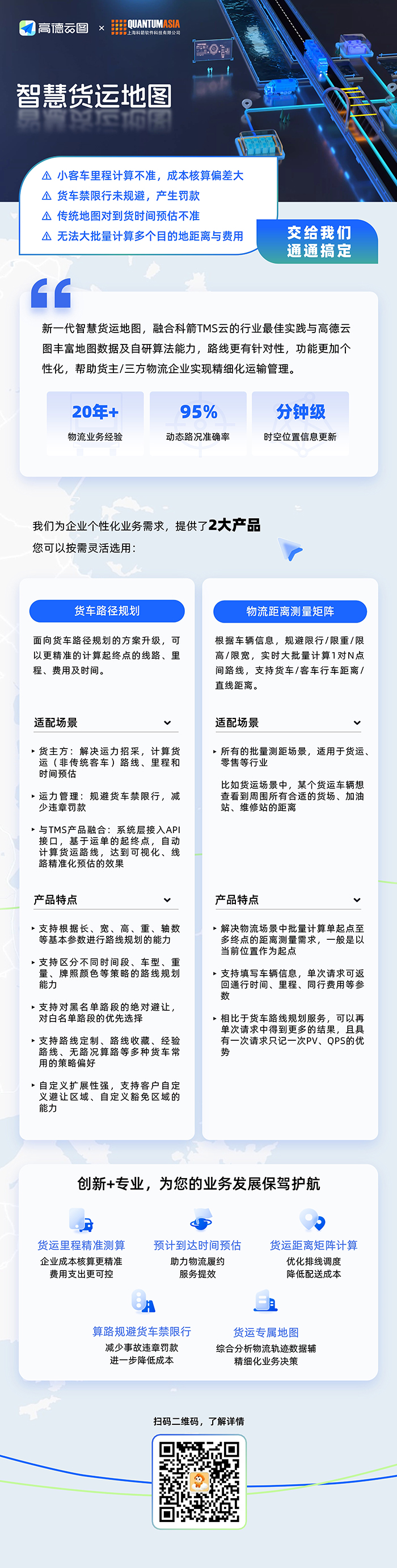 我們期望未來可以與高德云圖一道,從云計(jì)算到人工智能,不斷優(yōu)化智慧貨運(yùn)地圖,幫助貨主有效應(yīng)對各類運(yùn)輸挑戰(zhàn),賦能物流行業(yè)產(chǎn)業(yè)持續(xù)升級。