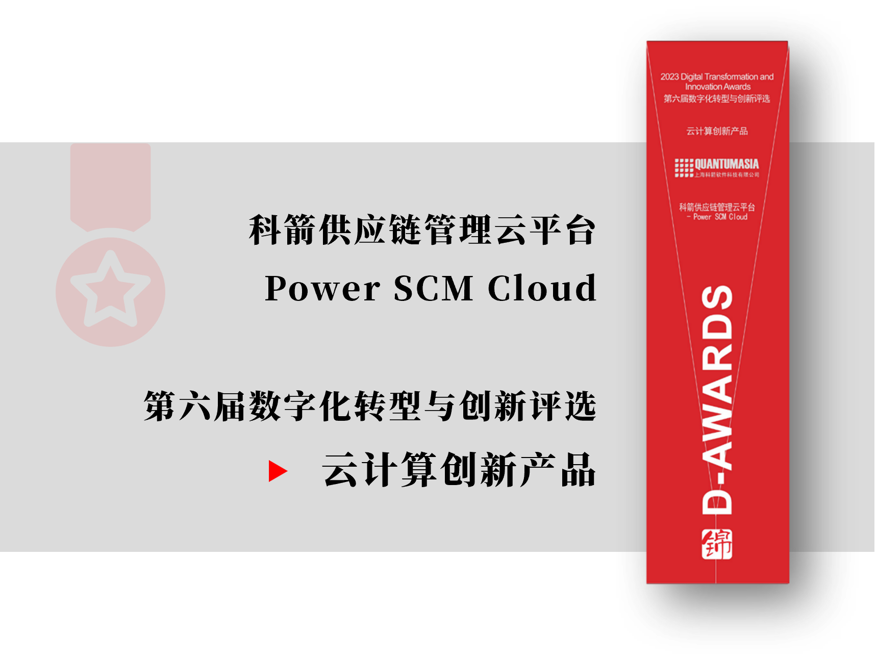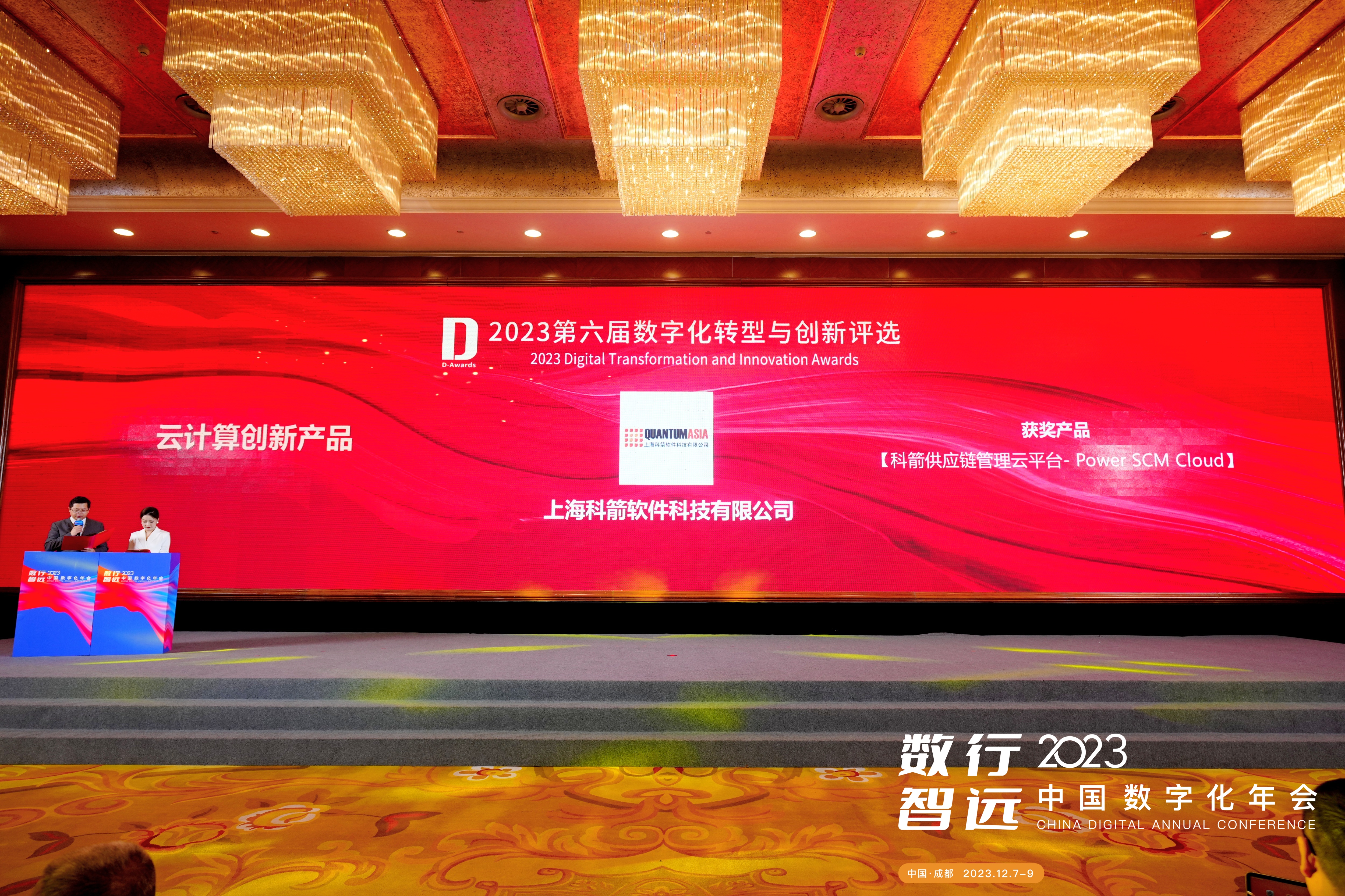 12月8日,“2023年第六屆數字化轉型與創新評選”頒獎典禮于成都隆重舉行,科箭憑借供應鏈數字化標桿產品Power SCM Cloud,成功入選“年度產品/解決方案TOP50”并獲評“云計算創新產品”稱號。