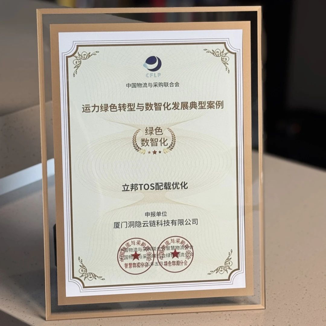 近日,洞隱攜手立邦打造的“TOS配載優化項目”,通過AI算法優化拼單方案和運輸路線,從而減少空駛率和無效運輸,憑借顯著的“降本增效”與“低碳減排”,入選中物聯發起的【運力綠色轉型與數智化發展典型案例】。