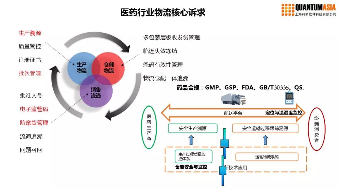 對醫藥行業的物流核心訴求進行分析后,金鳴指出,科箭的箱/托條碼化、電子藥監碼與追溯、智能物流設備(HME)物聯網(IoT)、供應鏈計劃和優化算法、供應鏈可視化、移動應用、全程追溯和溫濕度監控、Open API等解決方案,能夠輕松滿足醫藥行業的物流核心訴求。