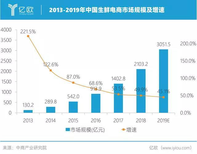 百果園所在的生鮮零售行業,從2012年到2019年處于高速增長期,并且在2018年行業規模超過2000億人民幣,未來的增長空間和增長速度依舊有非常大的潛力。根據中商產業研究院的報告,2018年,中國生鮮電商市場規模超過2000億人民幣,2019年將超過3000億人民幣。