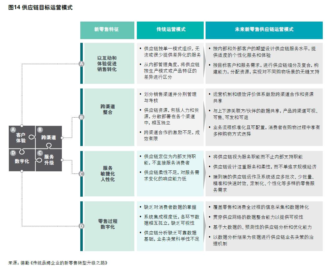 - 端到端的供應鏈運作及系統適應多批次、少批量、精準和快速時效、定制化、個性化等多樣的零售服務需求
