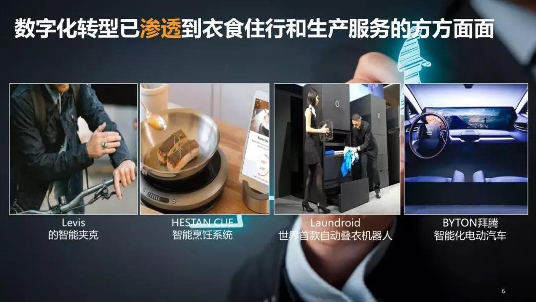 數字化轉型已經滲透到衣食住行和生產服務的方方面面,如智能可穿戴設備、智能烹飪系統、自動又疊衣機、智能化電動汽車等。