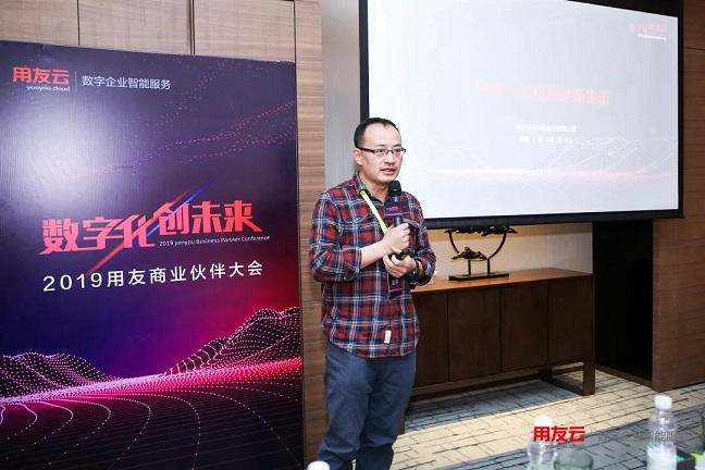 圖:用友網(wǎng)絡(luò)高級副總裁徐洋發(fā)布用友生態(tài)發(fā)展“鯤鵬計(jì)劃2019”