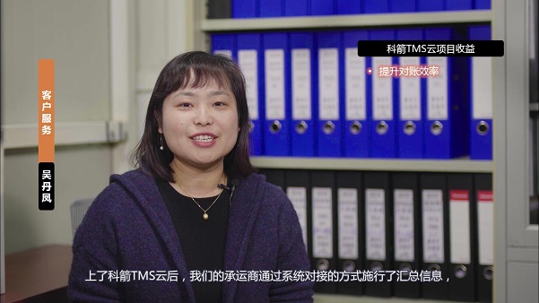 客戶服務(wù)吳丹鳳:上了科箭的TMS云后,我們的承運商通過系統(tǒng)對接的方式,實現(xiàn)了匯總信息,客服可以實時查詢訂單的執(zhí)行情況,我們也為客戶提供了微信入口,客戶可以自主查詢訂單執(zhí)行情況。