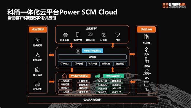 科箭基于多年的供應鏈服務經驗和產品沉淀,考慮到供應鏈波動性對產品快速響應的要求、供應鏈數據量激增對大數據分析的需求、供應鏈高效協同對端到端透明可視化的要求,為打破單一功能軟件形成的信息孤島,于2017年成功集結科箭的三朵“云”,將訂單管理、運輸管理、倉儲管理三大企業供應鏈執行的核心功能整合在一起,推出一體化供應鏈云平臺Power SCM Cloud,從訂單接入開始,到訂單執行、補貨計劃、全局庫存管理,倉儲運輸執行,到最后的物流費用結算、成本分攤。數字化時代數據是王道,有了我們這些執行系統所采集的供應鏈相關數據,我們也提供了一個集事件管理與預警、數據展示與分析、預測與優化于一體的供應鏈控制塔,讓供應鏈中的大數據更好地為企業所利用,為業務帶來更大價值。