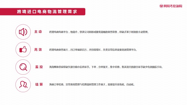 本次發布會網易考拉發布的云TMS系統“瑞麟”是跨境電商行業內首家真正落地的運輸管理系統,它具有3大行業內領先的特點:1.訂單全程可視化;2.異常處理主動化;3.運費結算自動化。“瑞麟”的上線不僅能夠顯著提升消費者購物體驗,更為跨境電商行業的物流服務品質樹立了新的標桿。