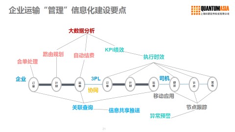 科箭銷售總監任捷先生對業內運輸的管理作出發言:十年磨劍,TMS云助力企業運輸管理。任捷先生表示:物流的需求一直在改變,由20年前企業管理核心圍繞產供銷,物流僅僅起到輔助作用,到十年前企業開始關注物流成本,合同物流模式的涌現,再到現今線上線下融合,企業開始轉向關注運輸管理績效。這些轉變對信息化的推動是非常明顯的。在當下經濟形式不是特別樂觀的情況下,各行業對內控的要求越來越高,供應鏈的高度信息化必要性已經完全體現,但是目前行業內對于供應鏈管理還不成熟,由于整條供應鏈的不透明,執行端能力不夠,管理的規范性不足,供應鏈管控很難達到企業的要求。