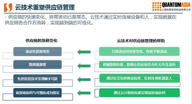 二、云技術(shù)通過(guò)實(shí)時(shí)連接設(shè)備和人,實(shí)現(xiàn)數(shù)據(jù)在供應(yīng)鏈各合作方流轉(zhuǎn),實(shí)現(xiàn)端到端的可視化,從而應(yīng)對(duì)供應(yīng)鏈的異常波動(dòng)。
