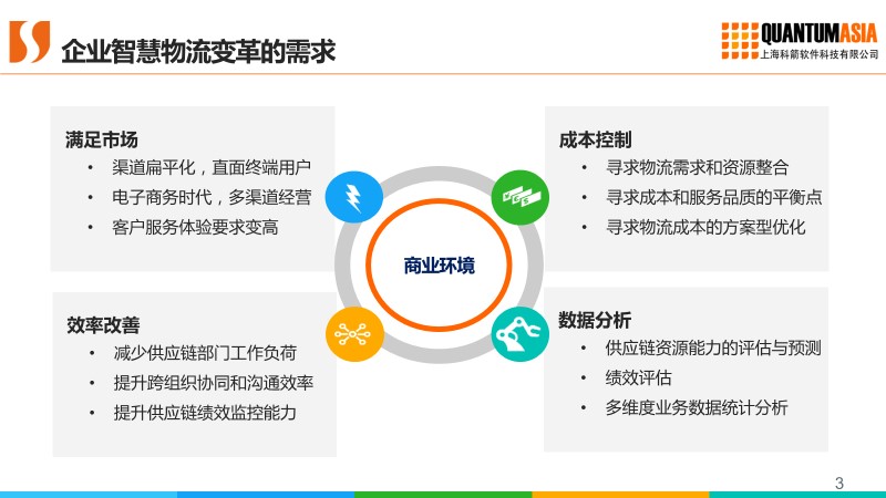 傳統企業物流業務向智慧物流轉型主要體現在4個需求上: