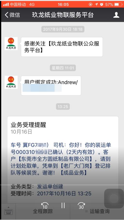 -綁定玖龍紙業(yè)微信公眾號后可以收到業(yè)務(wù)受理提醒信息
