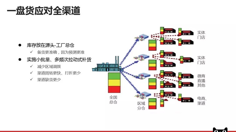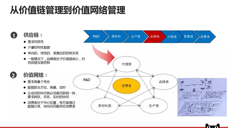 張勇提出,未來一定是供應(yīng)網(wǎng)絡(luò)的管理。以前的供應(yīng)鏈?zhǔn)欠忾]的,但是現(xiàn)在是供應(yīng)網(wǎng)絡(luò),消費(fèi)者處于中心位置,物流廠商、生產(chǎn)廠商都要多去接觸消費(fèi)者。現(xiàn)在的信息網(wǎng)絡(luò)足以支持我們以網(wǎng)絡(luò)狀態(tài),全觸點(diǎn)接觸消費(fèi)者或客戶的消費(fèi)者。很多廠商在打通所有供應(yīng)網(wǎng)絡(luò)的同時,會發(fā)現(xiàn)面料和半成品,包括主要零部件的備貨周期比原來大大縮短了,因?yàn)樯狭鲝S商也會看你的線上銷售數(shù)據(jù),也會各個店看你整體銷售情況,然后主動備貨,這一切都跟成本模型息息相關(guān)。