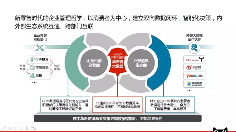 最后,張勇總結(jié)到,新零售時代的企業(yè)管理哲學(xué),就是以消費(fèi)者為中心,建立雙向數(shù)據(jù)閉環(huán),智能化決策,內(nèi)外部生態(tài)系統(tǒng)互通,跨部門互聯(lián)。這是品牌商和各個企業(yè)未來發(fā)展的生態(tài)核心,也是阿里想要跟大家更多擁抱和合作的機(jī)會。