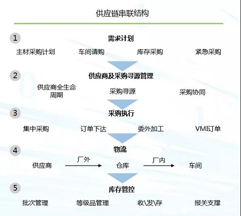 從供應商的供應商到客戶的客戶,之間所有的產品以及服務的流轉都屬于供應鏈的范疇。供應鏈轉型,不能僅僅考慮某一點,應該是全盤化的考慮。在項目實踐中,我們更多關注于供應鏈需求計劃的產生、做供應商的尋源、采購執行、庫存管理。
