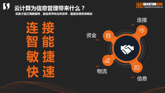 供應鏈管理涉及到相應的環節和角色。原來這些供應鏈上的企業都是各自為戰,有了云以后,我們可以搭建一套系統,讓所有這些相關的角色都能夠進入這個社區,所以我們說首先云計算可以更方便地連接供應鏈上相關企業到一個協同平臺,只有打通數據鏈才能使供應鏈更高效運營。