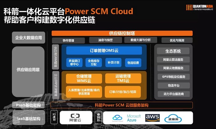 張敏先生介紹了科箭上云的歷程。他說,科箭基于多年的供應鏈服務經(jīng)驗和產(chǎn)品沉淀,考慮到供應鏈波動性成為新常態(tài)、數(shù)據(jù)量激增、云技術賦能數(shù)字化供應鏈,使端到端透明可視化成為現(xiàn)實等因素,為打破單一功能軟件形成的信息孤島,于2017年成功集結(jié)科箭的三朵“云”,將訂單管理、運輸管理、倉儲管理三大企業(yè)供應鏈應用核心功能整合在一起,推出一體化供應鏈云平臺 Power SCM Cloud,從訂單接入、分配,到倉儲與運輸執(zhí)行。